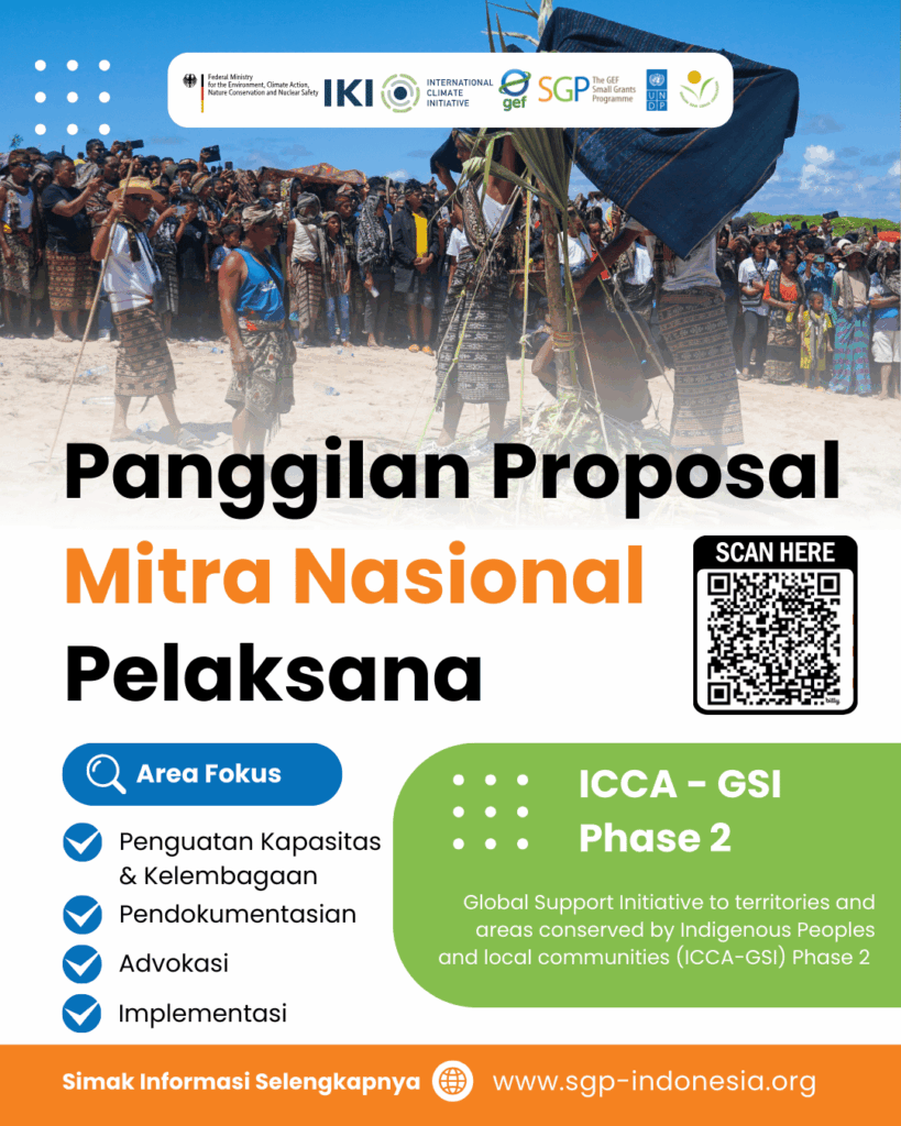 Program GEF SGP Indonesia, di bawah Inisiatif Dukungan Global untuk wilayah dan kawasan yang dikonservasi oleh Masyarakat Adat dan komunitas lokal (ICCA-GSI) Fase 2, mengundang organisasi, komunitas, dan kelompok masyarakat yang melakukan kegiatan untuk mendorong pengakuan hak masyarakat adat dan komunitas lokal dalam mengelola kawasan konservasi untuk berpartisipasi dalam proses seleksi program hibah. Inisiatif ini didanai German Federal Ministry of the Environment International Climate Initiative (BMUV IKI) dan disalurkan melalui sekema GEF Small Grants Programme Tujuan Program Inisiatif Dukungan Global ICCA Fase 2 bertujuan mendukung inisiatif dan aksi oleh masyarakat sipil, Masyarakat Adat dan komunitas lokal untuk mencapai Target 3,... Continue reading